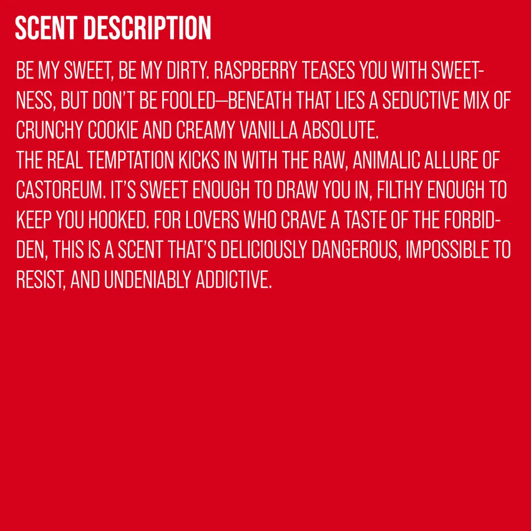 Be My Cookie de Born To Stand Out est un parfum auquel vous ne pourrez pas arrêter de penser. Dès la première senteur, une essence évocatrice de framboise naturelle éveille les sens, vous transportant dans un jardin débordant de fruits mûrs. Cette note fraîche et vibrante établit un prélude irrésistible vers un cœur chaud et captivant.