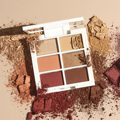 Paleta de 6 sombras de ojos en polvo, sin talco y con una fórmula limpia, tienen una textura mantecosa que permite una aplicación suave.